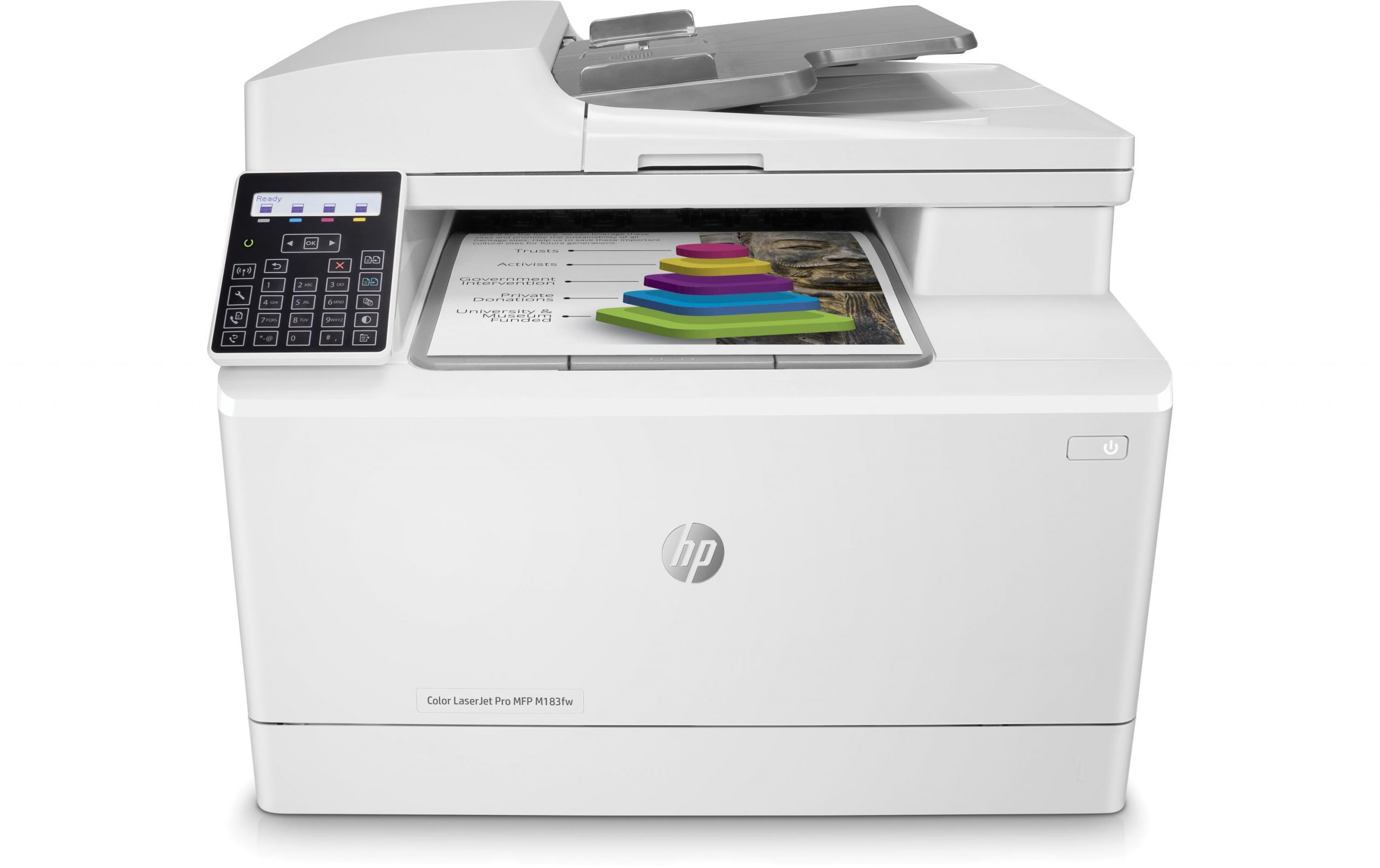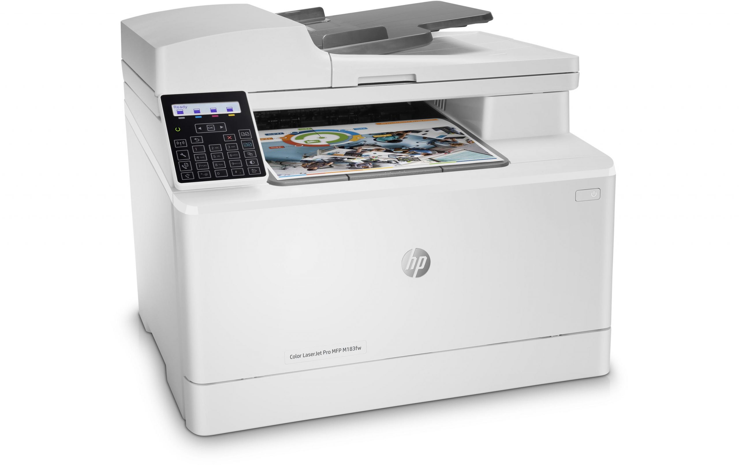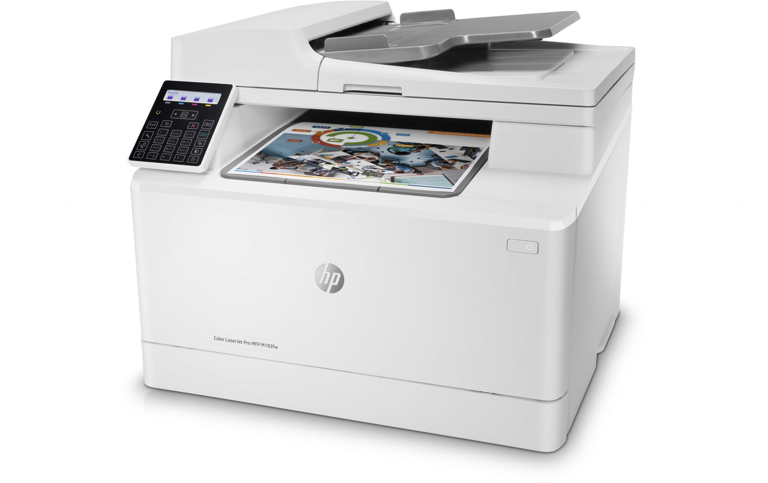 Der HP Color LaserJet Pro MFP M183fw liefert kräftige, detaillierte Farbausdrucke in guter Geschwindigkeit. Dank integriertem Flachbett- und ADF-Scanner kann er nicht nur drucken, sondern auch scannen, kopieren und faxen. Beim Medienhandling zeigt er sich nicht wählerisch: Neben Normalpapier verarbeitet er auch schwierigere Medien wie Transparentfolien, Karten, Umschläge und Hochglanzpapier. Schonen Sie ausserdem die Umwelt und Ihr Budget mit energiesparenden Funktionen wie der «Auto-On/Auto-Off»-Technologie.