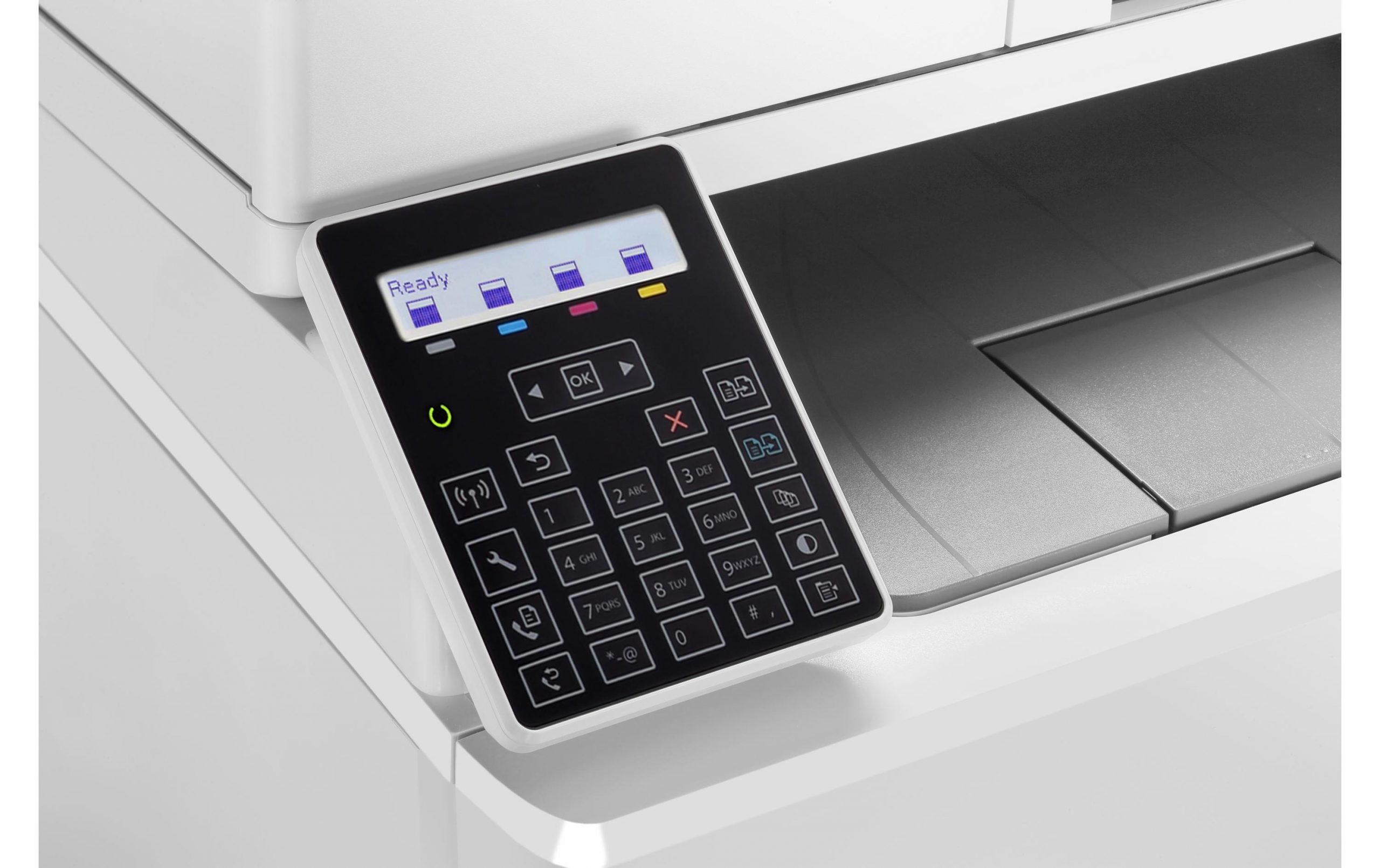 150-Blatt-Standardpapierzufuhr  2-zeiliges LC-Display mit 26 Tasten